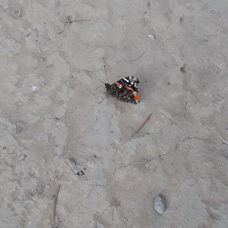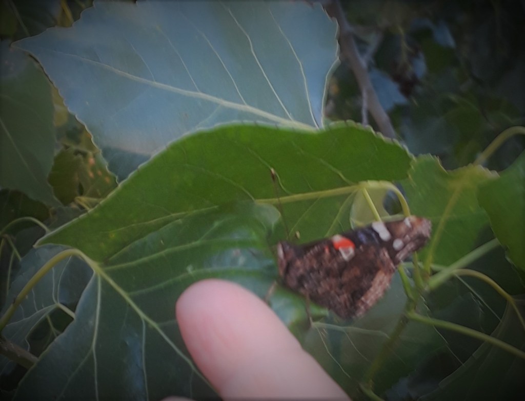 I have been seeing a Red Admiral butterfly (I call it Rick) at the same spot on my daily Arroyo walk for 4 days in a row. It always flutters around me, landing closer and closer. Yesterday I took this pic (no zoom), it let me hold my phone just 2 ft from it (until Ted got curious).