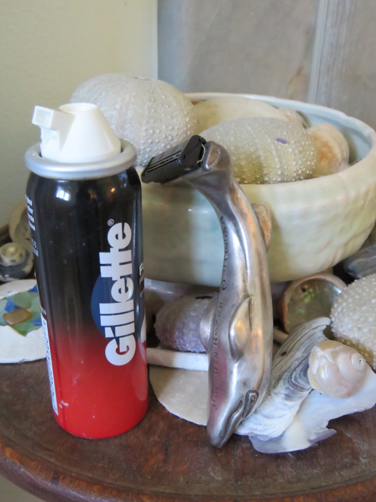 Because of SCU Lightning Complex fires our area was under Red Flag warning for possible evacuation. As I was gathering the important things and first aid items, I went into Rick’s side of the vanity drawers. Along with razor, travel shaving foam in the bottom of the white plastic organizer I found accumulation of black whiskers. It has been 6 months since I saw those black whiskers! Oh, how many times over the past 19+ years were those whiskers ringing the basin to spite me (and I wanted to ring Rick’s neck for not rinsing them down the drain). And now, seeing them I realize that I will never again see them in our bathroom sink. Wham! I felt a gut-punch, my heart sank, and I sank to the floor. No more meaningful talks while Rick shaved and I watched while meeting his gaze in his reflection.