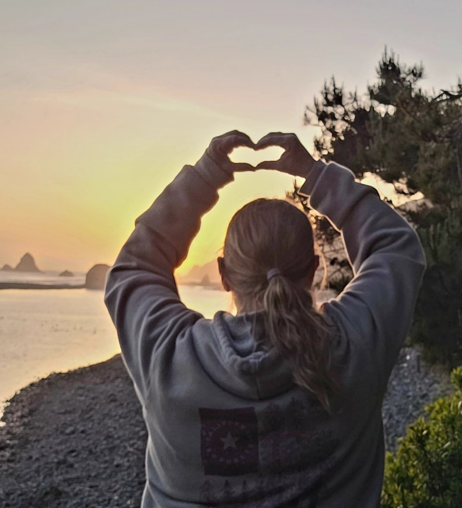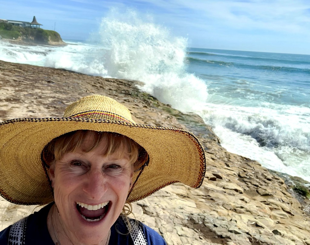 Maybe it’s not every widow’s rut, but I want to help my sister & brother widows to either avoid or get out of it, too. So – take a deep breath and the next step, even if it’s just to a new local park, a garden center, or a photo of your feet in the sand or your hand cradling a flower. This last picture is me celebrating life and love while watching the sunset at Jenner on my second evening.